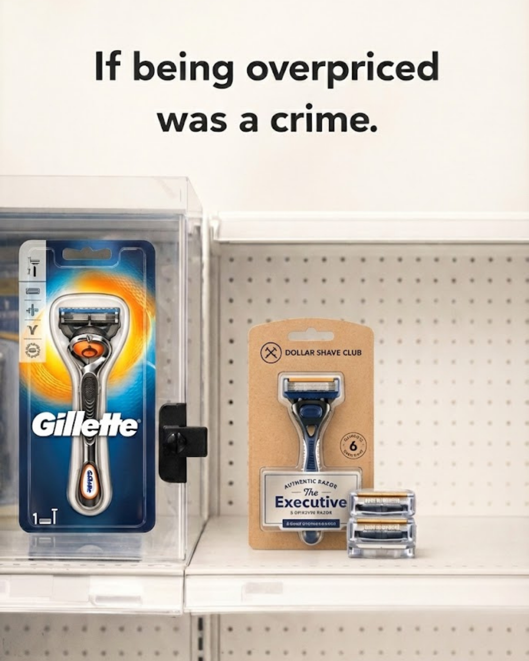 The razor category has turned a basic task into an overcomplicated system built on feature creep, inflated innovation, and unnecessary friction. For this project, I focused on reframing shaving not as something that needed improvement, but as something that never needed to be complicated in the first place. Instead of leading with price or product claims, the work highlights the everyday frustrations people already tolerate, like locked razor cases, overdesigned hardware, and the feeling that “progress” hasn’t actually made shaving better.